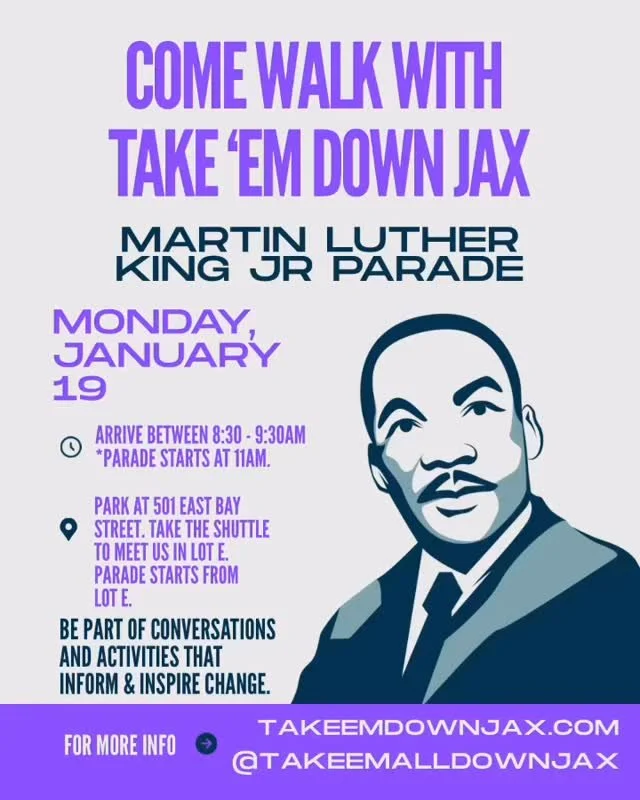 We’re at city council meetings every second and fourth Tuesday at City Hall (117 West Duval St.) Meetings start at 5 pm. Look for us in our purple Take 'Em Down Jax shirts.